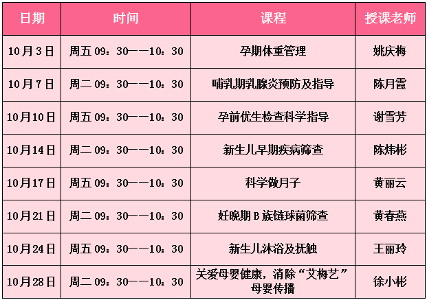【孕妇学?!亢谩霸小毕喟椤懈狙?0月份课程安排表,请查收!